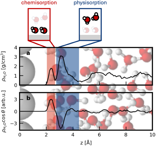 ec-MLP成功复现了Pt(111)-水界面的“钟形”微分电容曲线这一经典模型无法捕捉的特征,源于水分子在Pt表面的化学吸附及其随电势变化的吸附/脱附行为。该结果证明,混合框架能有效捕捉电化学界面的关键量子效应。